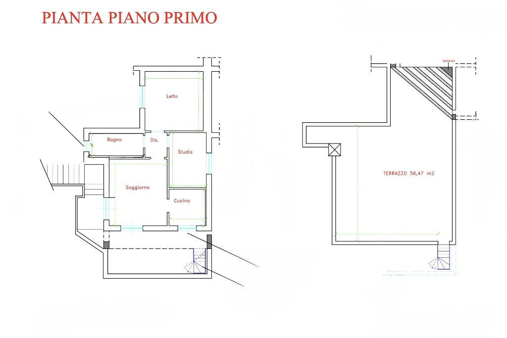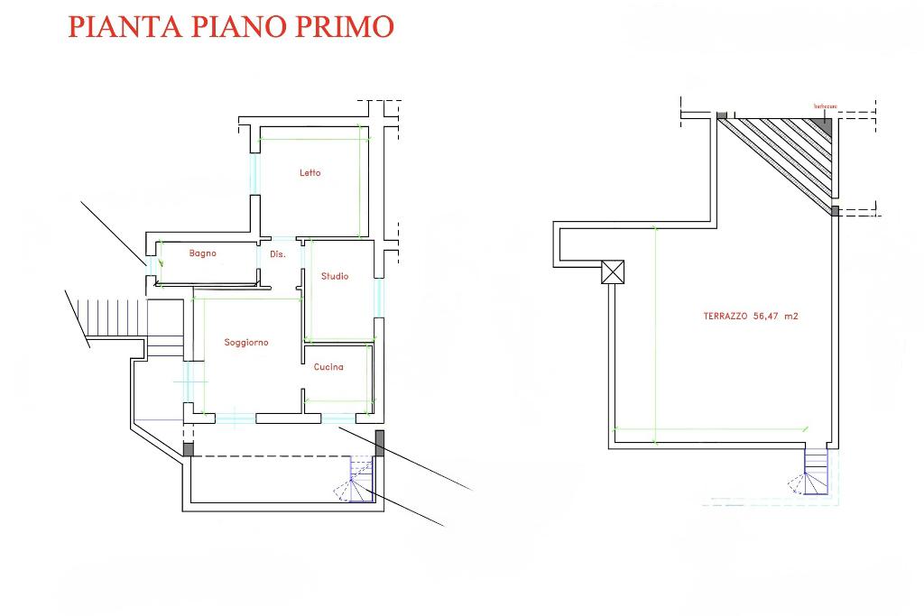 L’immobile si sviluppa al piano primo, accessibile da una scala esterna che conduce alla zona abitativa composta da: