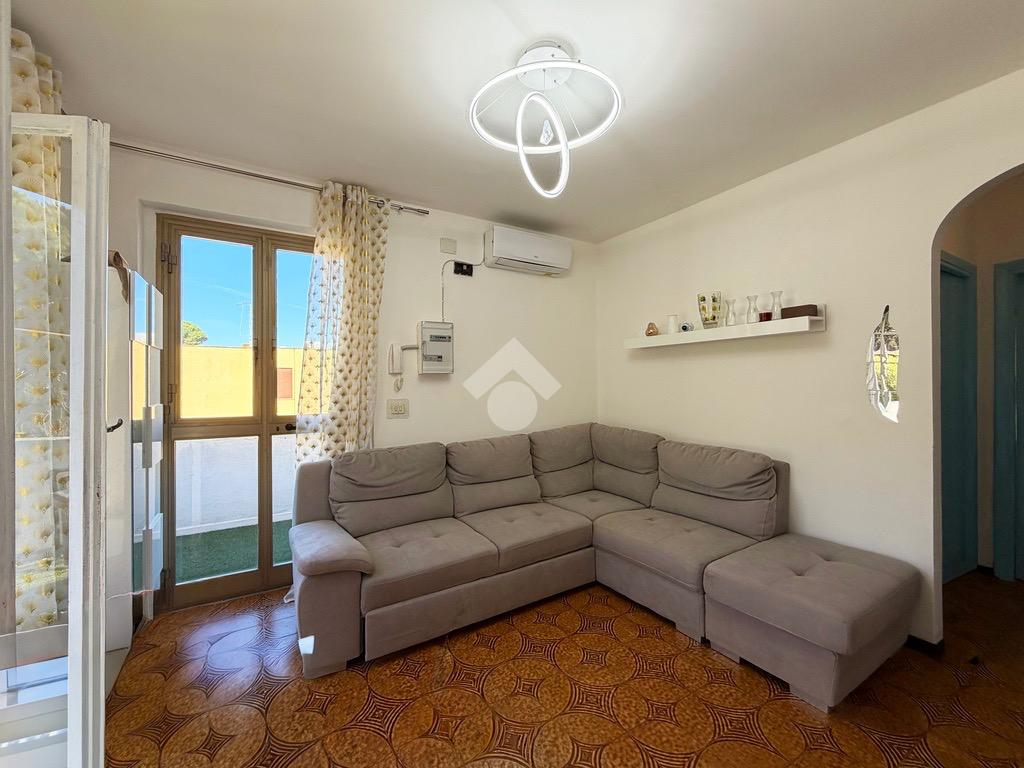luminoso soggiorno con accesso diretto al balcone,cucinotto separato,camera matrimoniale,camera singola,bagno finestrato.