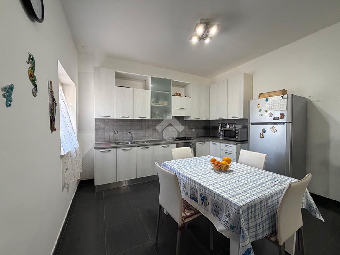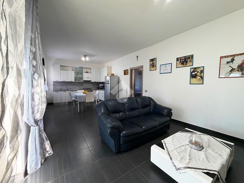 Entrando troviamo una zona giorno open space con cucina a vista e salotto, un ambiente ampio e luminoso ideale per momenti di convivialità.