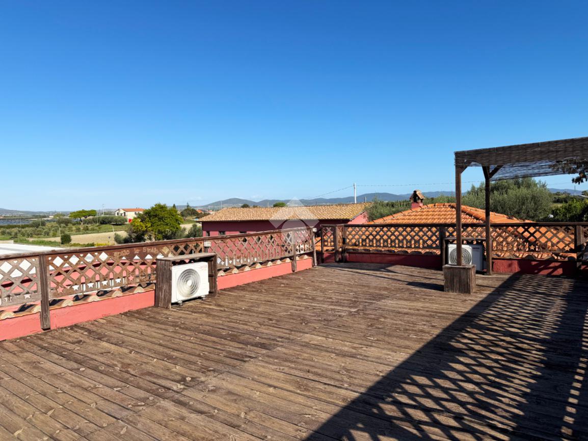 Tramite scala esterna si accede all’ampia terrazza/solarium, leggermente più raccolta ma comunque vivibile, perfetta per godersi il sole o allestire un piccolo salotto estivo.