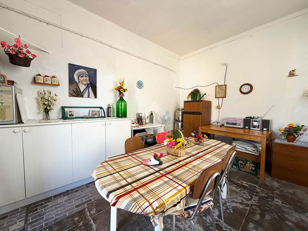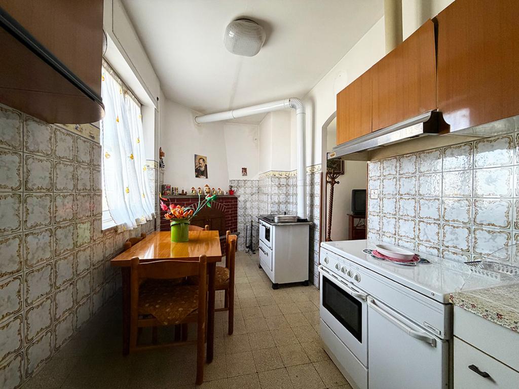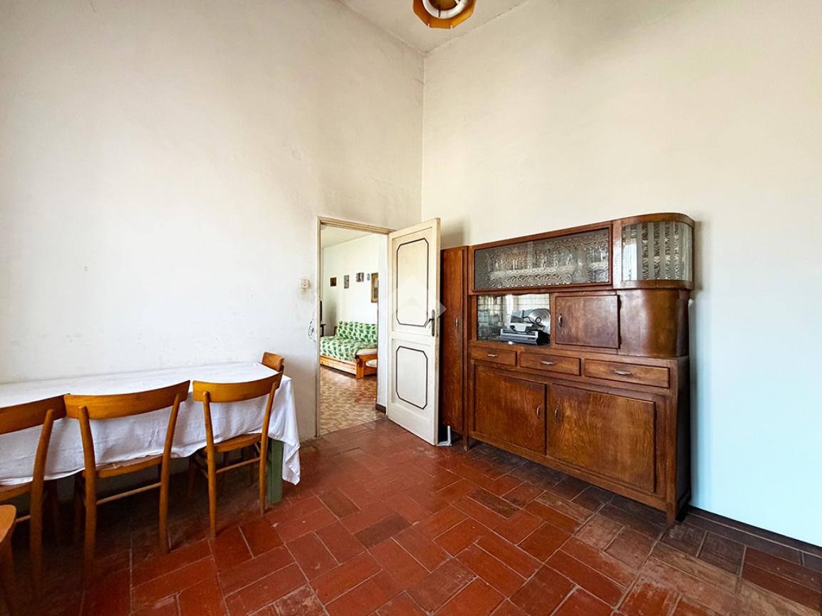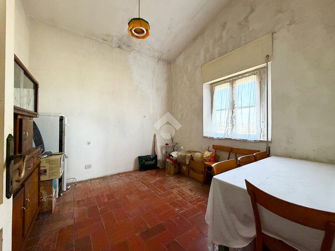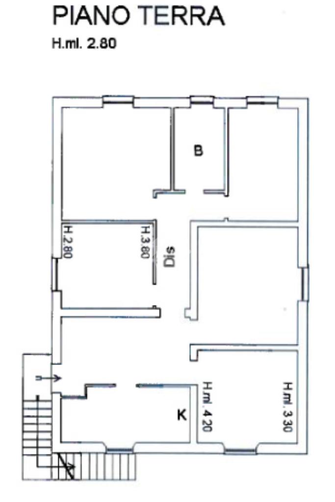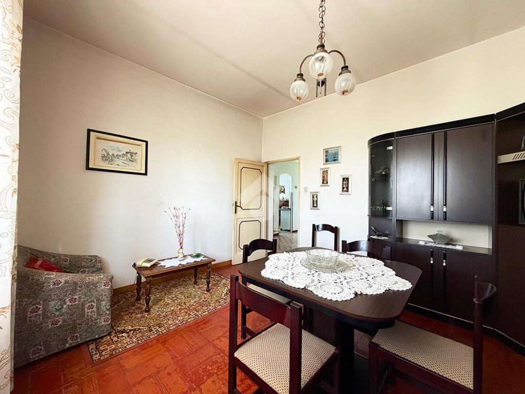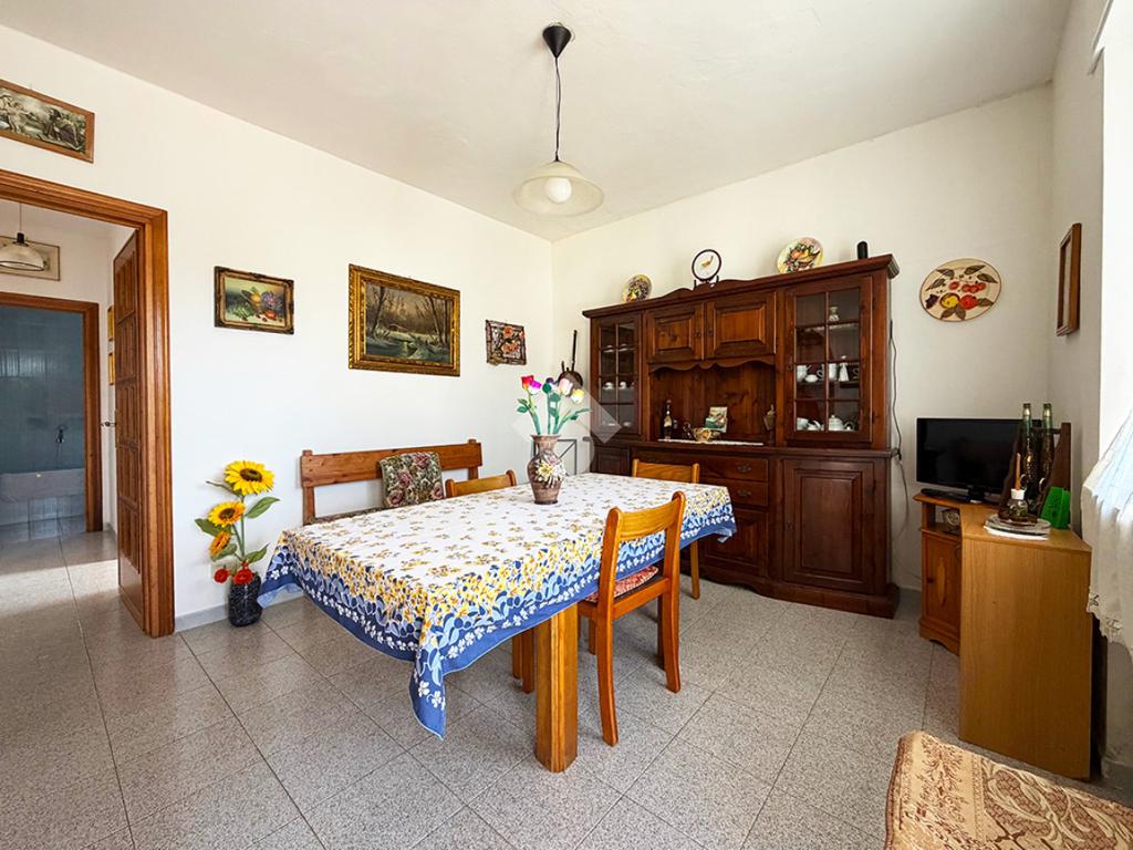 Tramite una scala esterna si raggiunge il secondo appartamento situato al piano primo,ed è così composto: un disimpegno che collega la cucina , un ambiente attualmente utilizzato come ripostiglio,una sala da pranzo, tre camere da letto matrimoniali ed infine un bagno finestrato.