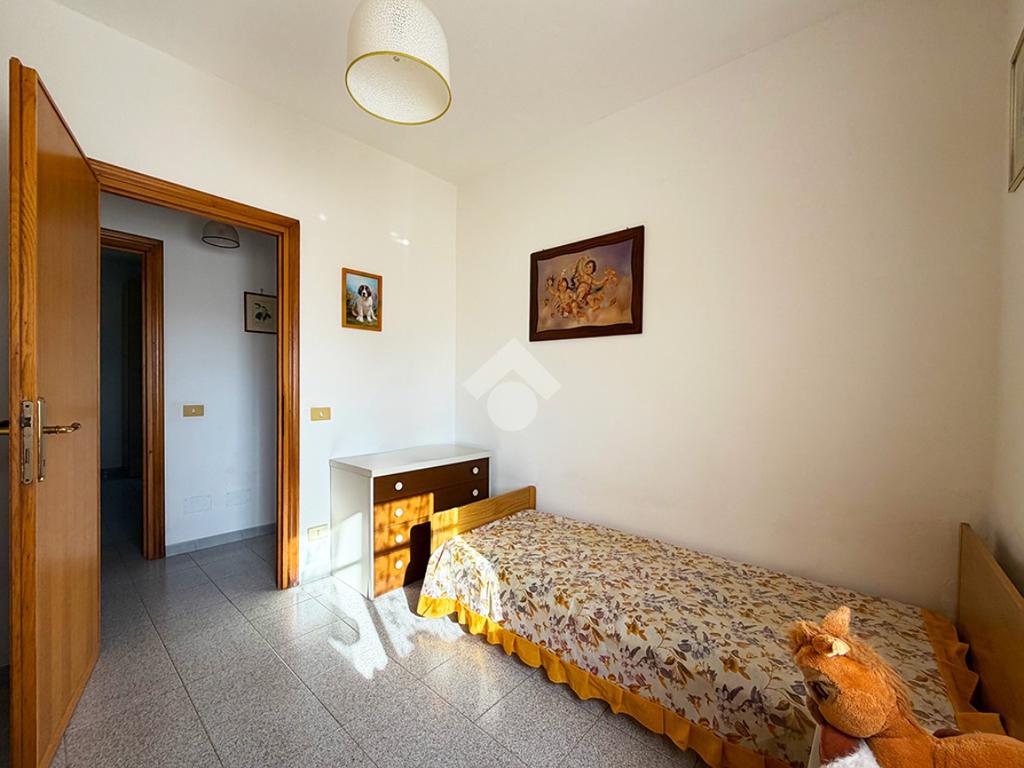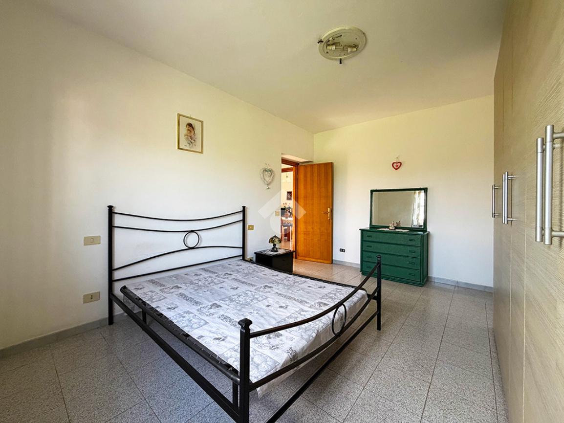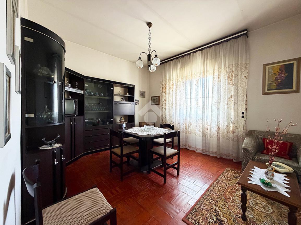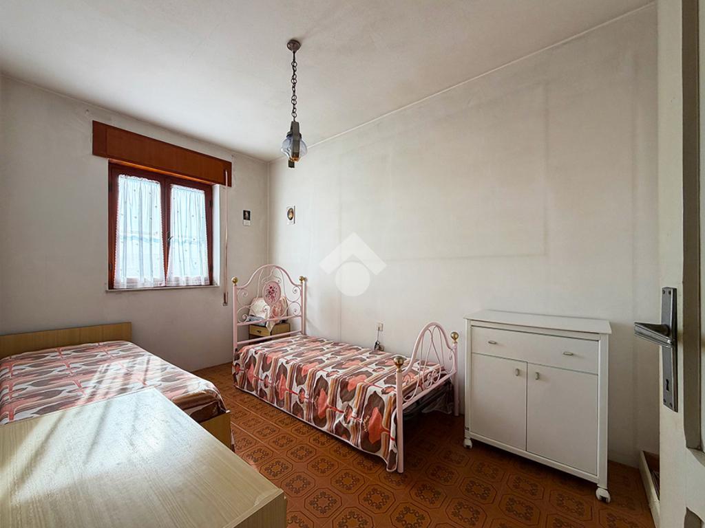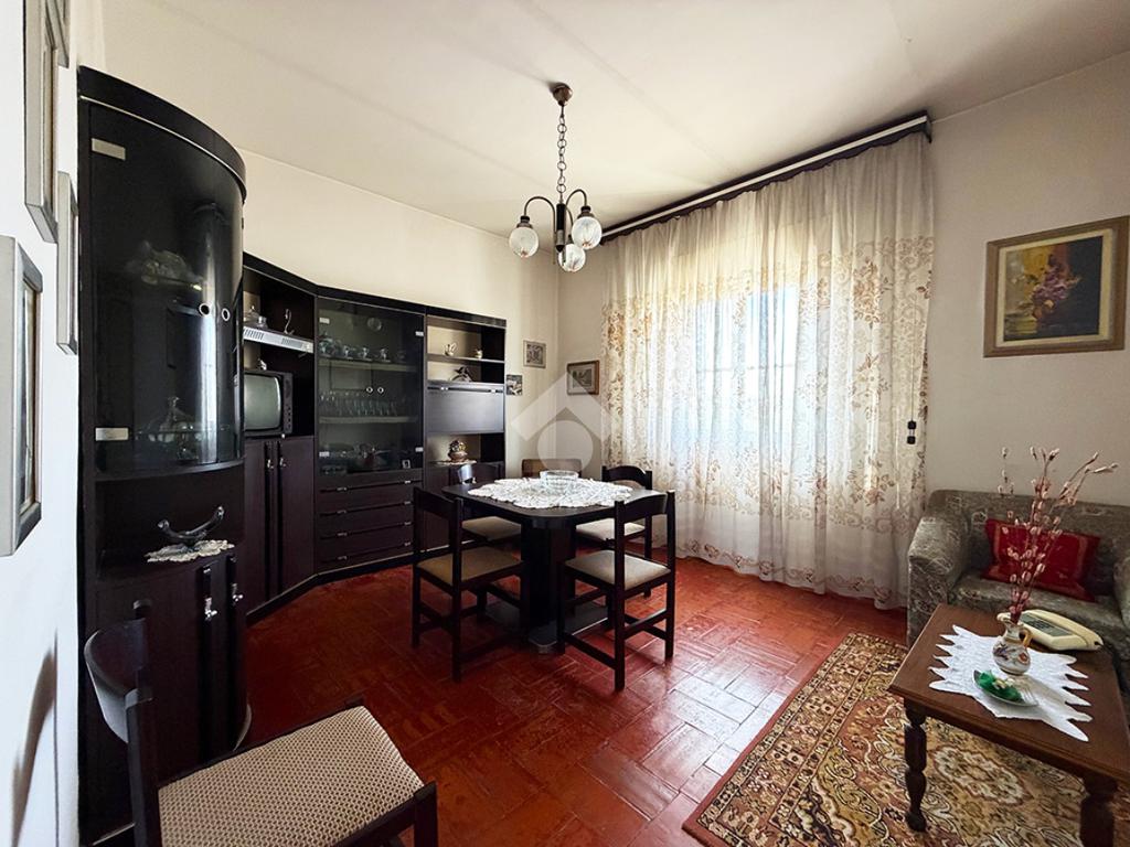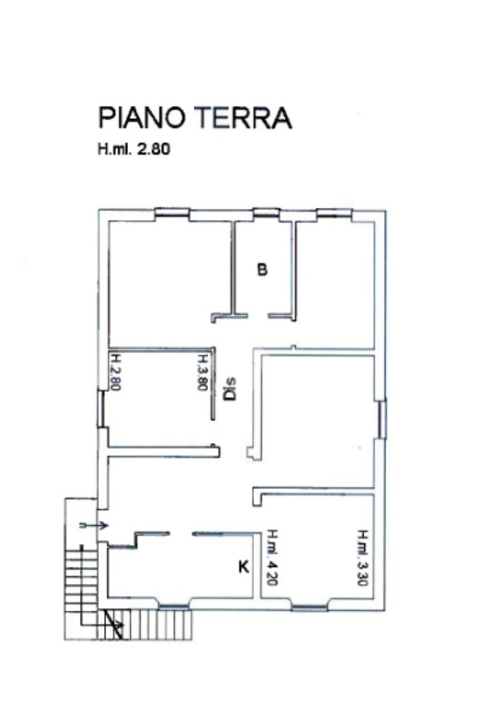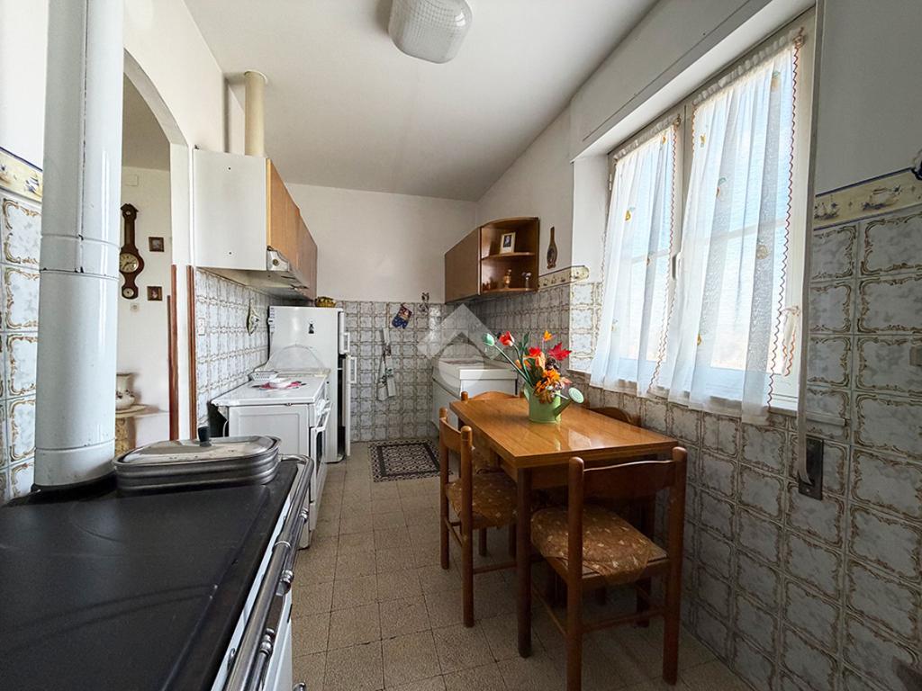 Tramite una scala esterna si raggiunge il secondo appartamento situato al piano primo,ed è così composto: un disimpegno che collega la cucina , un ambiente attualmente utilizzato come ripostiglio,una sala da pranzo, tre camere da letto matrimoniali ed infine un bagno finestrato.